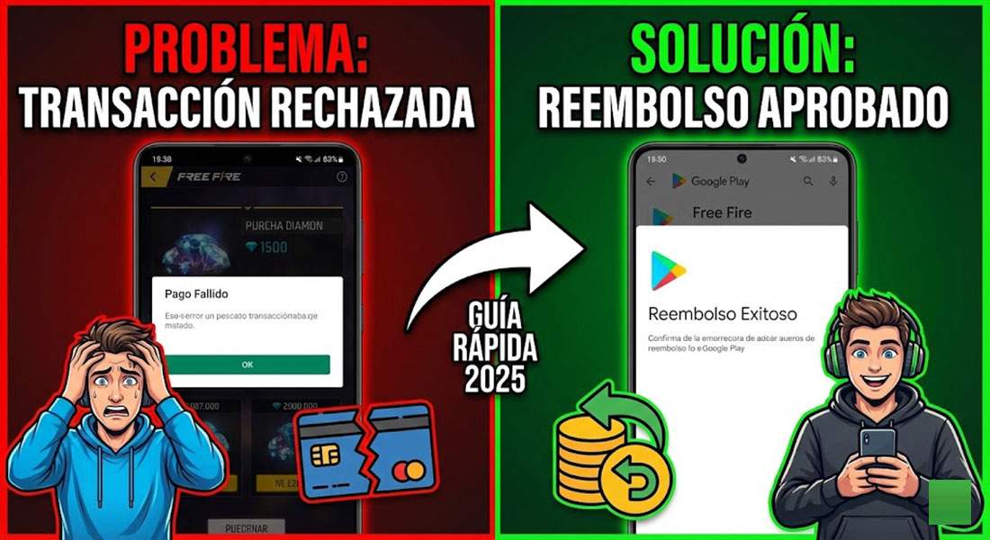 Solución: «Transacción Rechazada» en Free Fire y cómo pedir un reembolso a Google Play (Guía 2025)